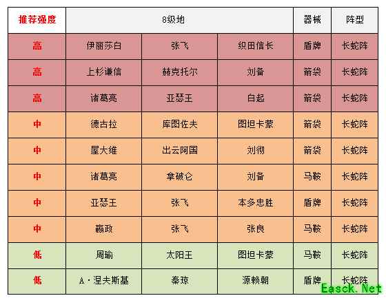 相信大家看到八级地守军的阵容时已经了解到他们的强势之处,张飞、诸葛亮这类优质五星将领都被安排到的守军中,同时守军的将领搭配趋于输出+防守或输出+恢复,逐渐向玩家的正常搭配靠拢,建议大家尽量选择技能联动性较低,将领较弱的野地尝试。