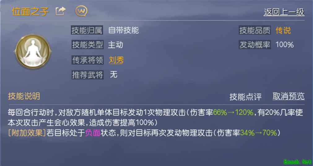 在的技能搭配方面,主要是根据将领的类型和技能特点来确定的,因此刘秀和刘邦搭配输出技能,刘备搭配辅助技能。由于刘秀自带技能能够对处于负面状态的敌人造成额外物理伤害,为触发此效果,部队中需要搭配一些能够对敌方造成负面效果的技能,从而将伤害最大化。