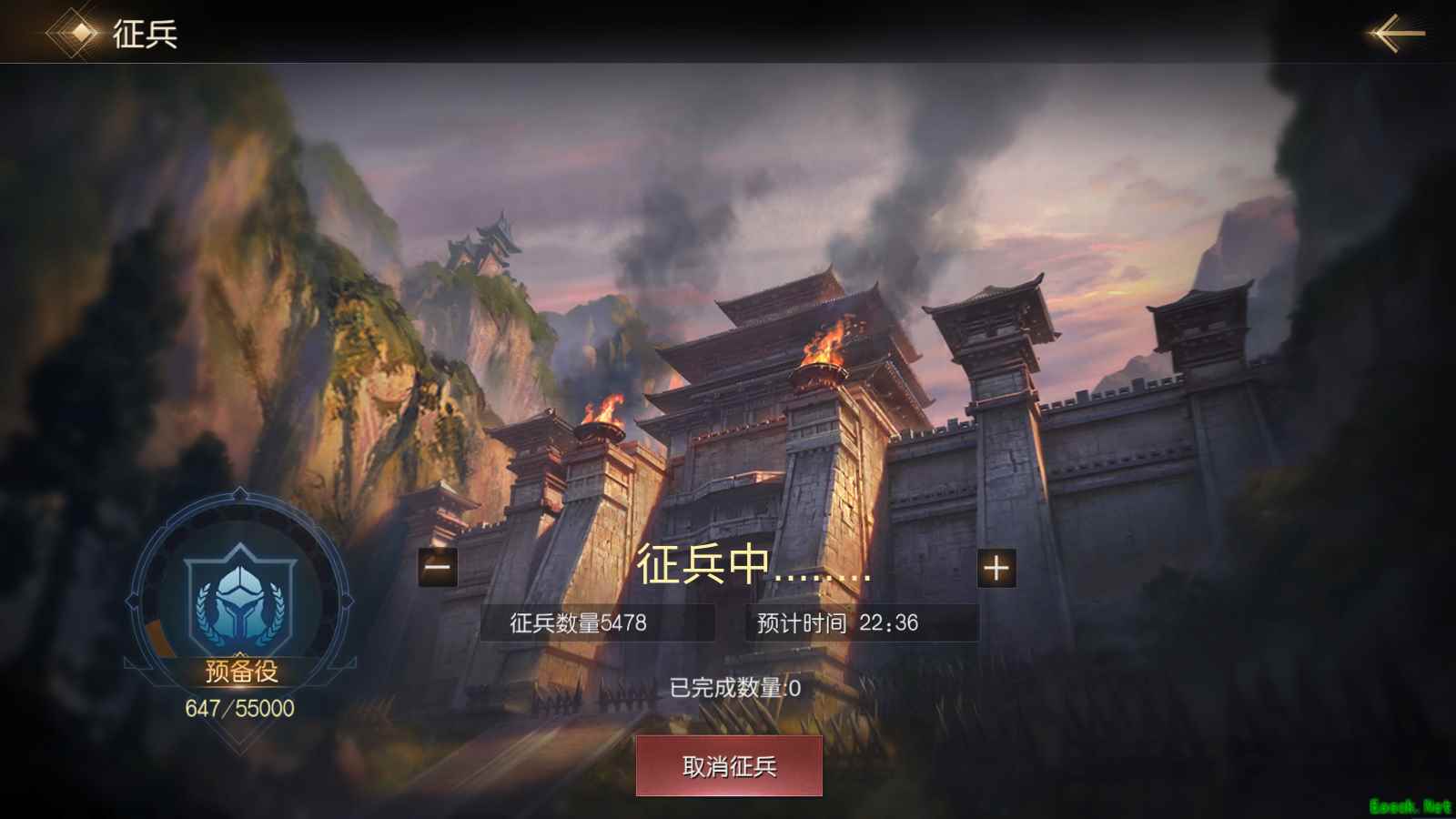 通过体力消耗减半,我们可以在更短的时间内去占领更多的土地,而更多的占地意味着对预备役的更高需求,而利用好“移除将领兵力返还100%“这个特殊效果能够使我们储存更多预备役,具体做法为:升级校场增加部队数量,然后将部队兵力配置满,这样就可以将征兵的指标空出来,当预备役使用完之后,可以将副队的将领撤下,并将退回的预备役补充到开荒主力部队中。