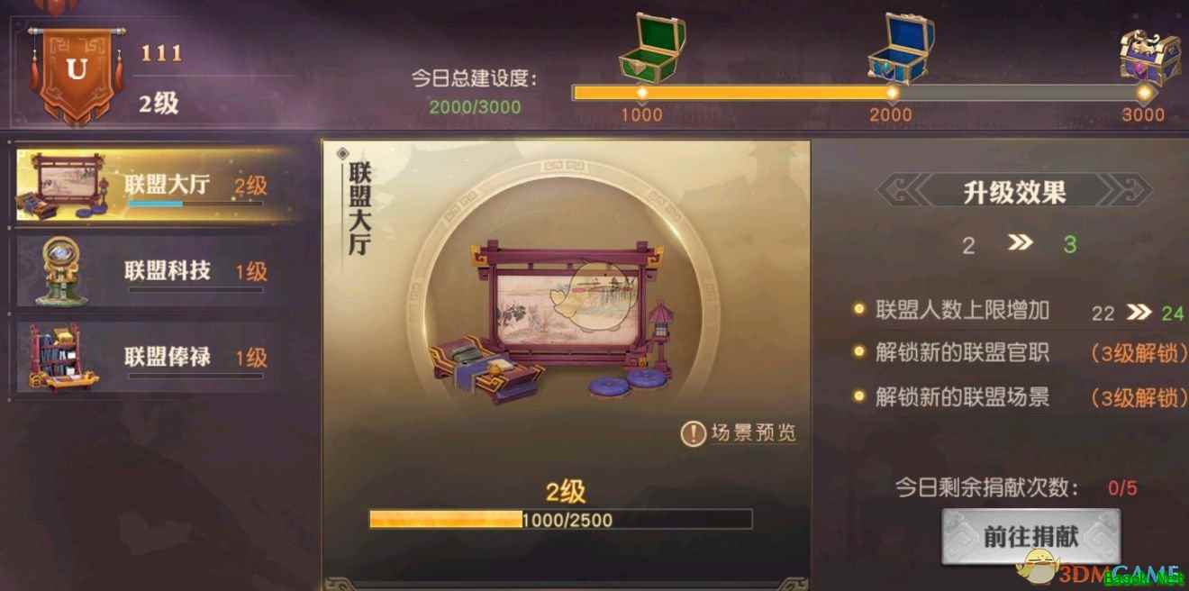 3、每日进行联盟捐献,可获得捐献任务的奖励。