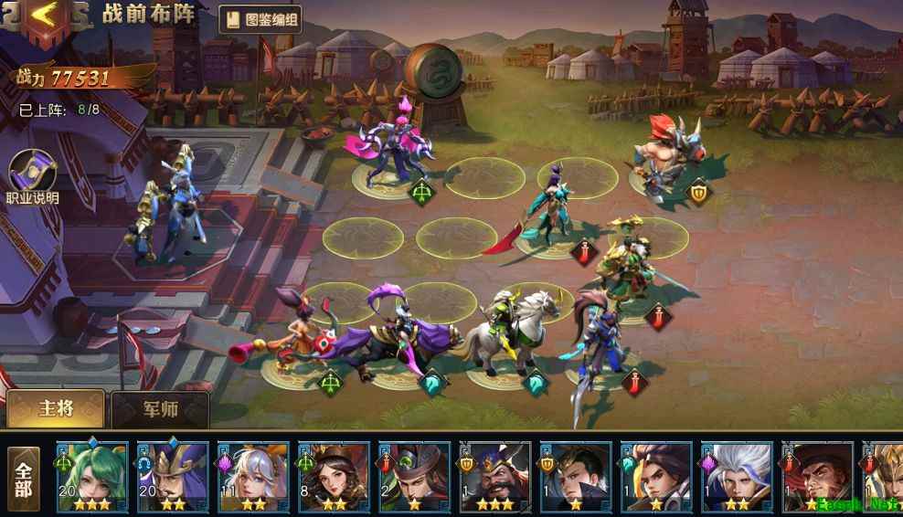 3、布阵玩法内可以通过主将图标左上角的标记来判定其所携带的兵种类型。