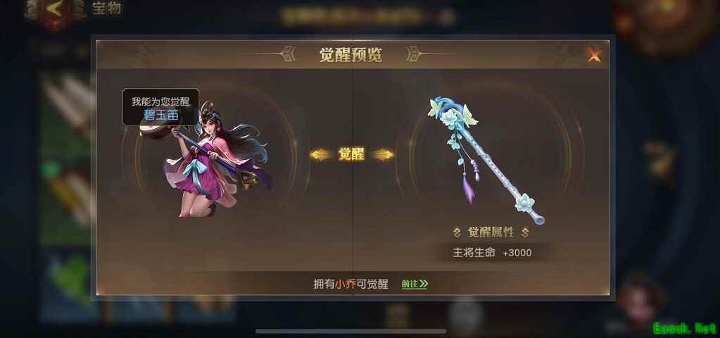 2、获得相应主将才可以觉醒宝物,觉醒宝物后可提升主将攻击力。