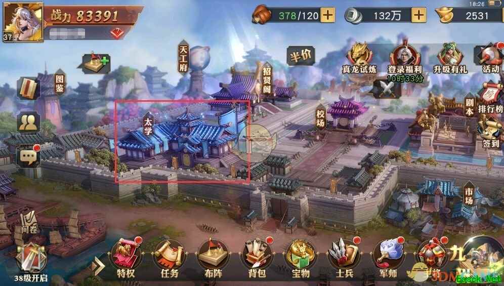 一、当等级达到32级,即可开启全新玩法 【太学】,在游戏登录后的首页即可进入。