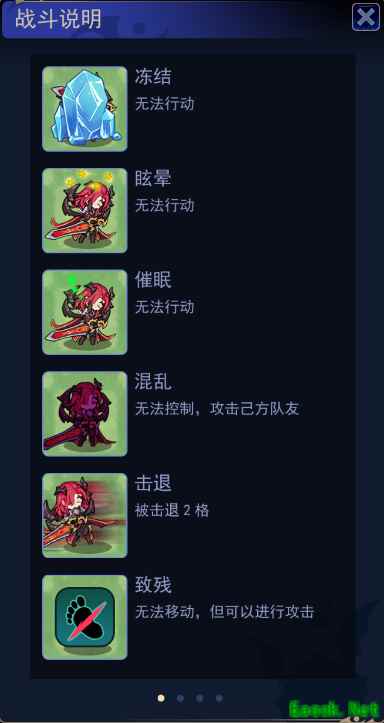 不同的攻击和技能会触发不同的异常状态,战斗中需要对此有所了解,不良状态包括: