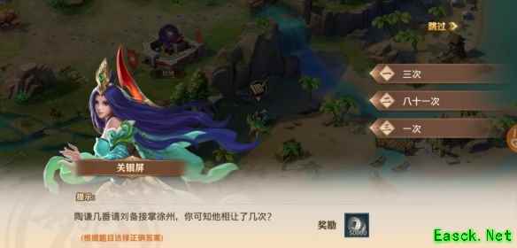 2、答题的奖励主要是银币,前期这些银币能帮助大家提升不少主将的战力。如果战斗类的支线任务打不过,建议大家优先考虑完成回答类的支线任务。