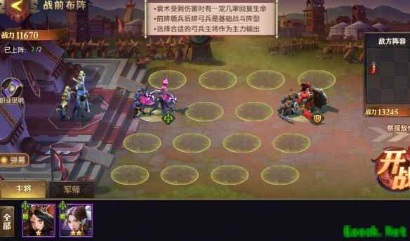 本章我们需要在三个弓手中选择一个来进行战斗。备选的武将有:祝融,步练师和张星彩。经过尝试发现,祝融的技能是对敌方的士兵进行范围性伤害,实战中可以发现击杀了袁术的士兵之后无法对一直回血的袁术进行击杀。张星彩的技能是段时间极大提高自身的攻速,但会降低少许攻击。所以用了步练师,轻松过关。