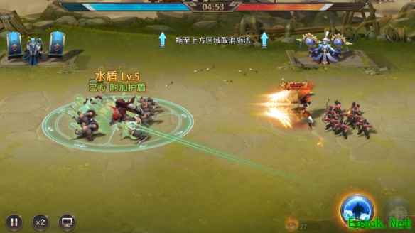 通关方法:默认布阵开局,当祝融身上光圈亮起后,立即释放“水盾”,挡住“火神后裔”,然后立即使用“活血术”给小兵回血,就能通关。