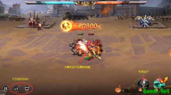 直接默认布阵开局,千万不要勾选加速和自动战斗,然后等敌方聚集的瞬间释放火系技能,然后在相同位置释放风系技能。