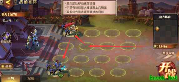 牵制篇过关非常简单,只需要根据布局提示排好布局,也就是将两位主将放置在做左侧一列,分别是上下位置。