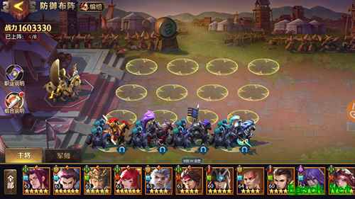 布阵指南:布阵时盾兵武将放在阵容最前排,尤其是对面拥有轻重骑兵时请针对摆放以保证己方后排输出环境。
