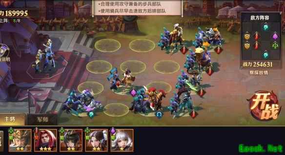 通过布局提示,我们可以得知我方部队没有盾兵,所以需要合理使用步兵,以及骑兵配合,才能获得本章节胜利。