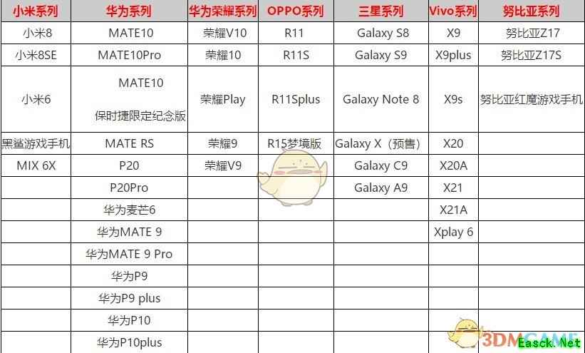 小编整理了部分支持设备名单,以下机型基本上是可以玩的,没有在榜单上的建议开低配置进行游戏,只要达到官方配置(运行内存4G以上,安卓5.0版本以上)就可以,仅供大家参考下: