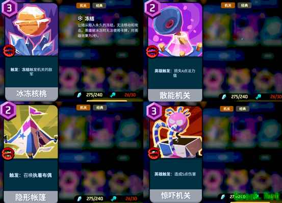2、当使用机关卡时,会在指定位置召唤一个机关,敌方单位踩中即可触发,同理如果不踩中,那就是浪费了。