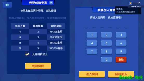 2、每个房间最多容纳32人,最少4人才可以开始,每次进入至少需要投一个竞赛币,这也是门票。