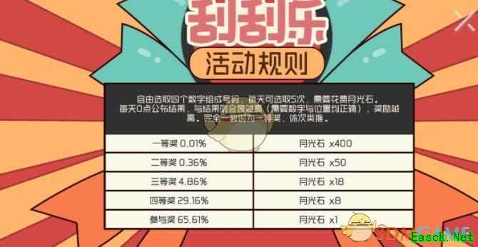 1、玩家需要选择四个数字来凑成参与号码,每天有五次的选取机会,并且每次参与需要花费月光石。