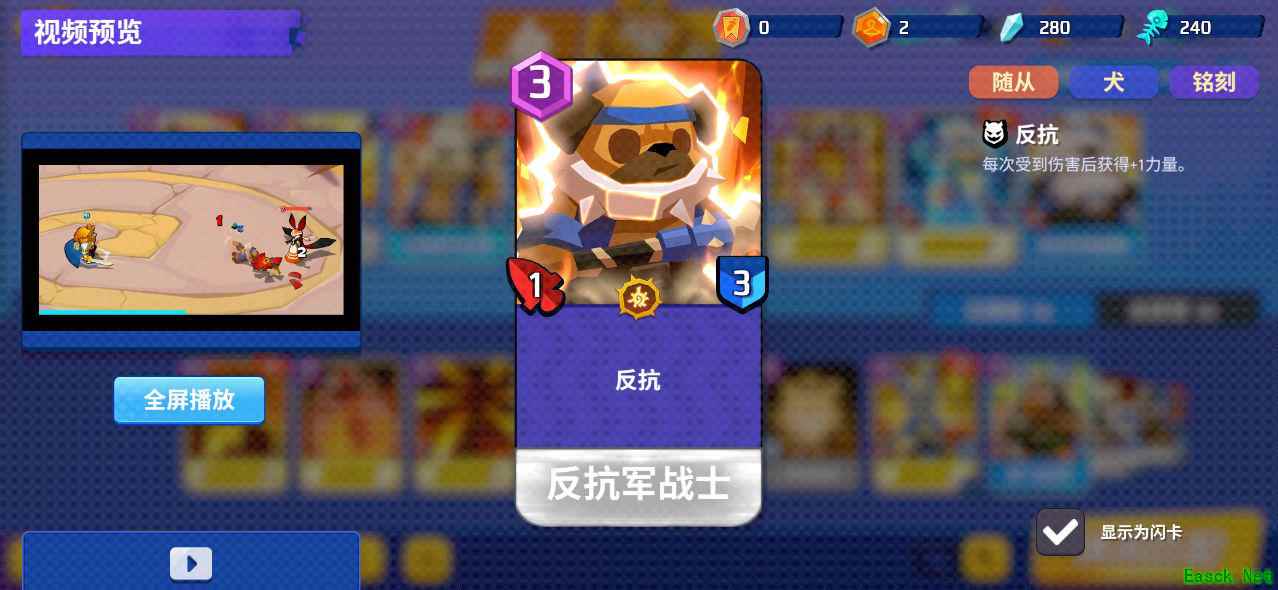 拥有反抗特性的随从,在受到伤害时获得+1力量的,可无限叠加。