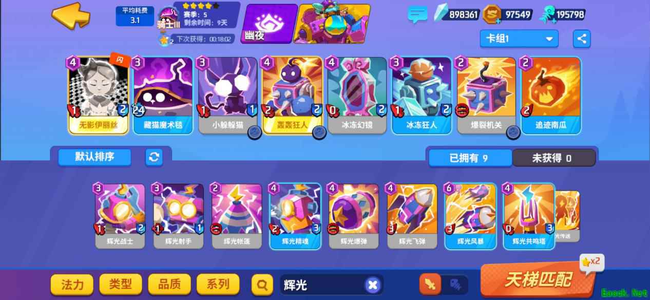 在新资料片“铭刻”中,“幽夜”阵容增加了全新的“辉光”字段卡牌,因此,全新的“辉光流”套路应运而生。带有“辉光”字段的卡牌,都与英雄施放法术有关。“辉光”字段的随从卡,自带关键词“共鸣”,效果为我方每使用一次法术,随从的攻击力和生命值都会增加一点。一个随从一共可以共鸣三次。“辉光”字段的法术,统一带有“位于手牌时,释放一次法术后,费用减一”的效果。