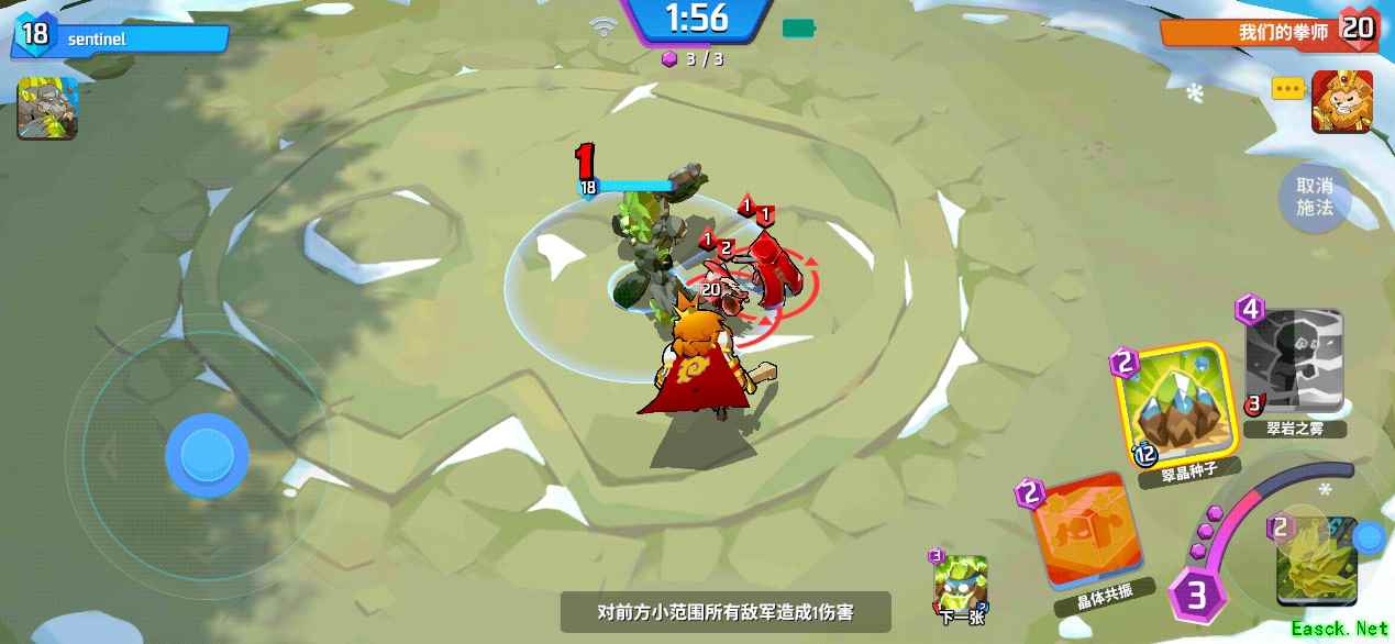 由于翠晶掉落后双方都能拾取,所以克里斯必须在前排抗伤,防止翠晶掉落后被对方拾取。在面对随从快攻时很容易被直接打残,得不偿失。