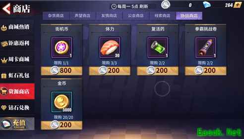 打开商店,选择资源商店,里面出售体力、复活药金币等物品,花费200协助积分可以获得30点体力。每天限购3次。