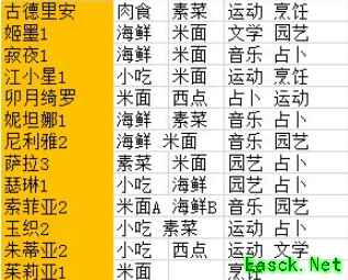 美食和约会爱好各6类,每角色都各有2类偏好