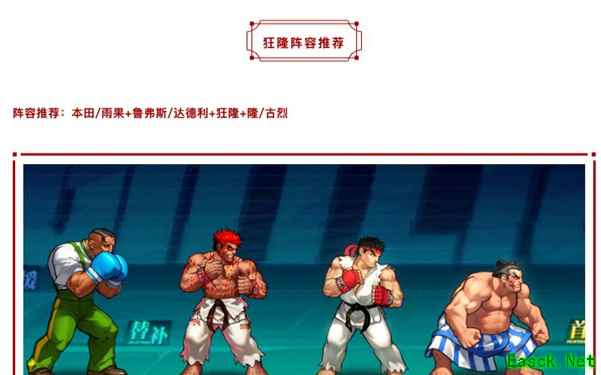 以上就是《街霸对决》狂隆阵容搭配攻略,更多游戏攻略请持续关注手游网!