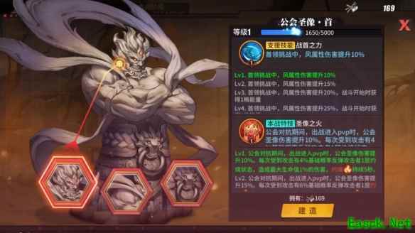 格斗家以公会为单位利用副本BOSS掉落奖励建造公会圣像,圣像成功建造后可对参与影罗巢穴的玩家进行具体场景的技能强化。
