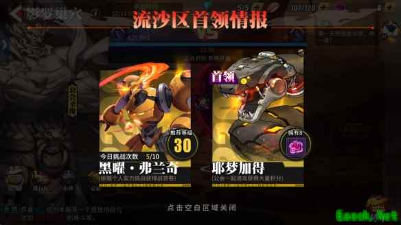 活动说明:活动期间将开放「流沙区」作战区域,格斗家们可通过挑战首领、建造公会圣像、参与公会对抗等玩法为公会争取更多的积分,并获得大量魂之斗气、斗魂加护石等稀有奖励,及仅可通过影罗巢穴获得的S级“极武核心”、S级“格斗核心”。登顶最强公会,挑战一触即发!