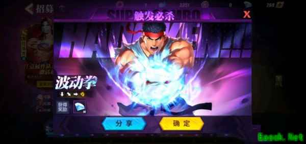 今天的街霸对决是隆的波动拳,在游戏中使用招募功能的时候只要使用出来了这个招式的连招就可以增加抽奖的概率,并且在每天的第一次使用的时候还可以增加30钻石。
