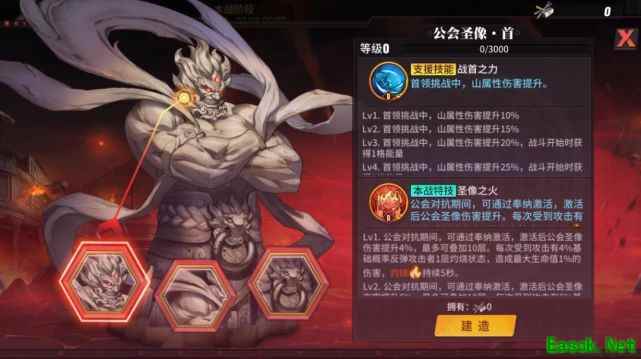 格斗家以公会为单位利用副本Boss掉落奖励建造公会圣像,圣像成功建造后可对参与影罗巢穴的玩家进行具体场景的技能强化。