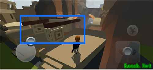 首先进入“阿士特克”关卡,来到球落下的这个地方,找到周围的正方形方块,将其放在两根柱子上,具体如下图所示。随后球落下来后会碰到木棍,朝着里面滚去,我们骑在球上面,跳到对面就能完成。