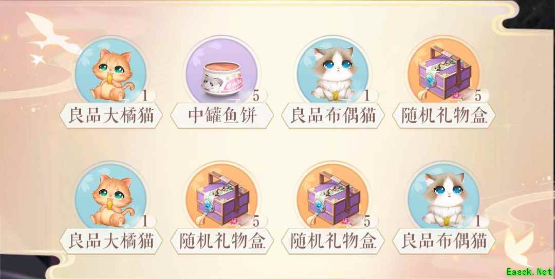 1、最基础应该也有5张花笺加上两只猫,然后出去把日常任务做了东西领了,20到80的四个礼包每个礼包300经验,合起来就是1200的经验。