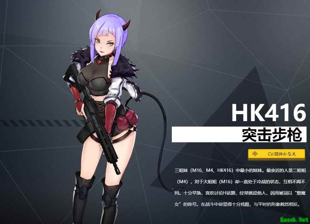 三姐妹(M16、M4、HK416) 中最小的妹妹。
