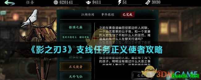 《影之刃3》游戏中支线任务正义使者怎么完成?游戏中除了主线任务之外,还有很多的支线任务,而且游戏中有些支线任务的奖励还是非常丰厚的,其中正义使者任务很多小伙伴不知道怎么完成,那么接下来小编为大家带来《影之刃3》支线任务正义使者攻略,一起来看看吧。