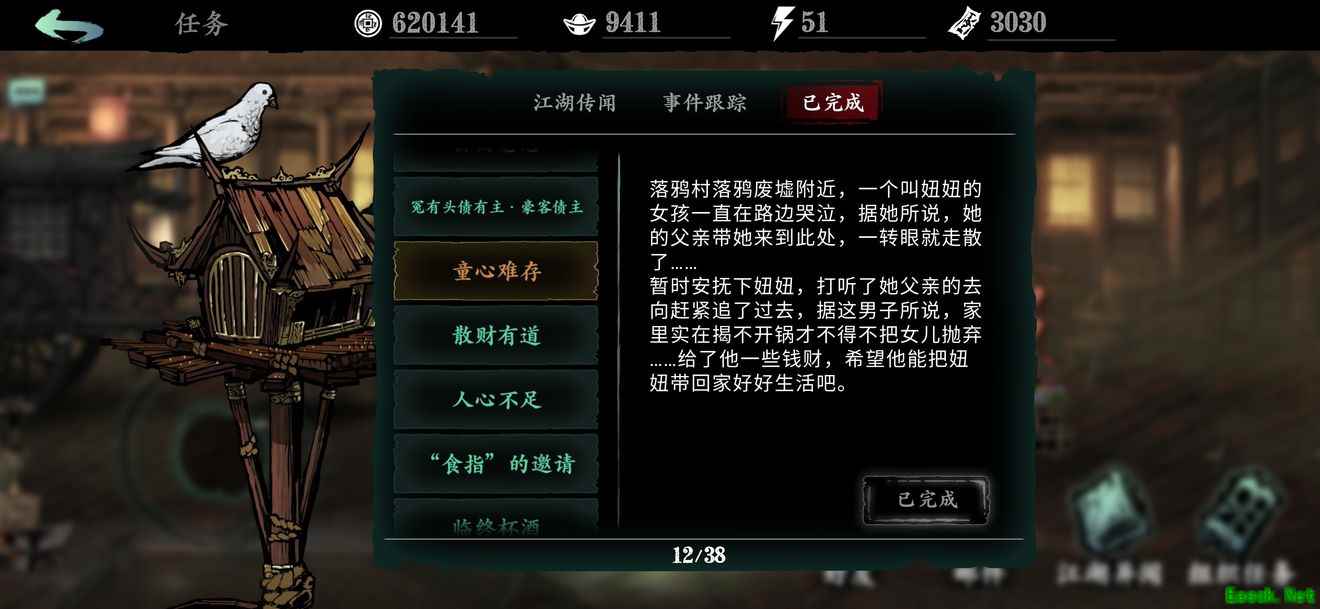 在落鸦村落鸦废墟找到妞妞选择善意隐瞒,跟着指引找到妞妞父亲给他1000铜币。童心难存(完)600流程