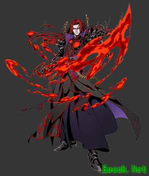 风度翩翩,瘦削挺拔的大叔,如同吸血鬼一般的苍白,英俊,不老,但是又显得神经质,血染的红色长发,眼睛已变成了银色迷离的目光。