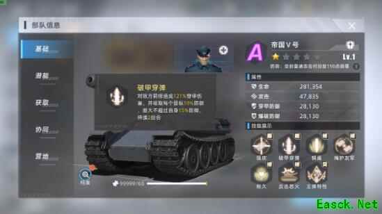 小贴士:比起部队突出的个体属性这套阵容的协同加成也同样值得注意,裁决火炮的三输出协同激活和帝国Ⅴ号加美洲狮的上阵协同,在输出和生存能力上都有着不俗的加强。前期的帝国Ⅵ号单体作战能力也十分强悍,对PVE各别关卡助益颇多。