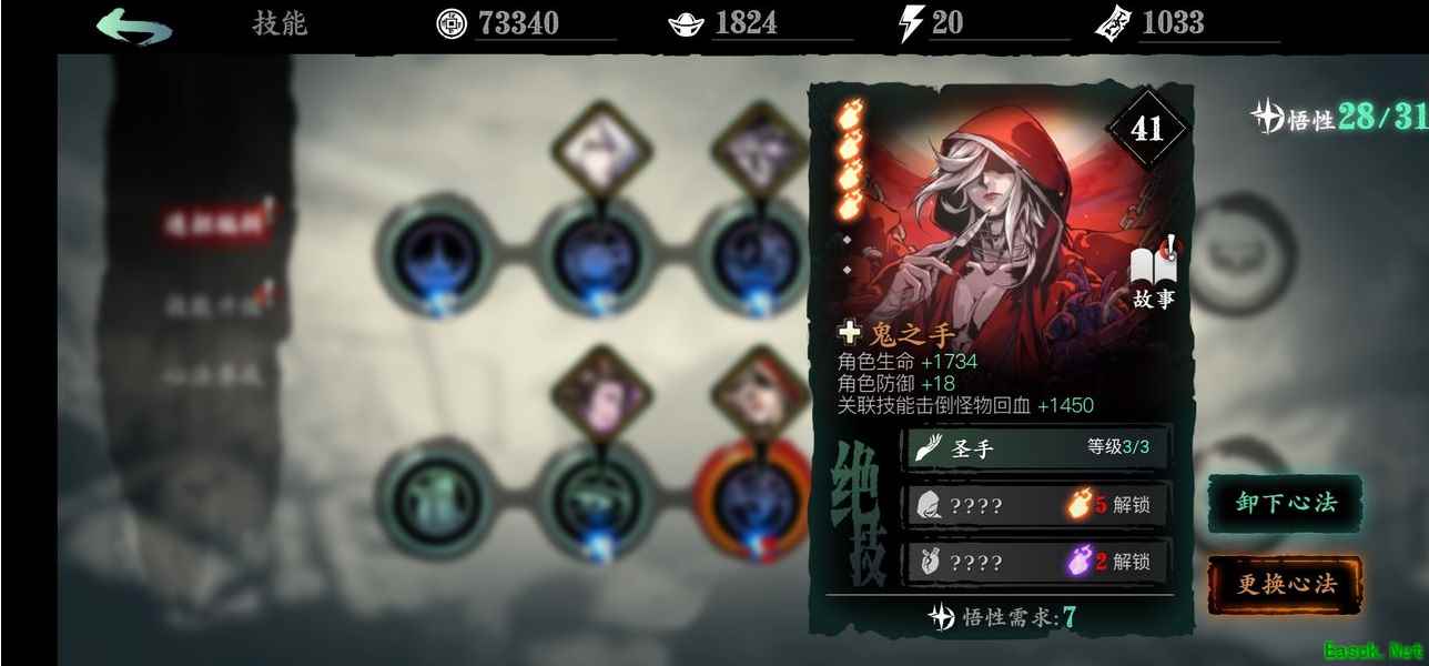 暗夜飘香用来降低技能冷却。鬼之手配上技能半遮面的回复能达到很好的效果。