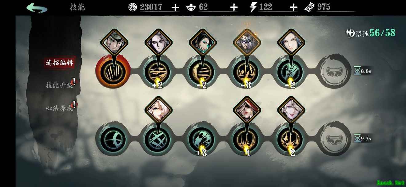 配置在下图,技能按顺序放,一开始就点一闪过去然后滚两圈,然后开剑意,因为剑意秒发的所以不用担心被小葵或者魂秒,如果刷出冻冻人了,冷冻时间有三秒,这三秒你输出一秒两秒走位就可以了,冻冻人可以至少帮你争取一分钟时间。
