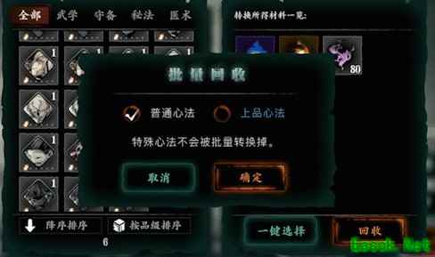 1、心法消耗保护就是游戏中的一键分解心法的功能,加入对紫、橙、珍藏版心法进行保护,不会被一键分解给分解掉,给玩家造成不必要的麻烦。