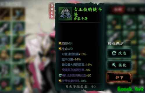 当玩家40级的时候就能够收集4件女王铁骑套,然后小编建议去铁匠铺你花费几十个绿色水晶改造成50级的。
