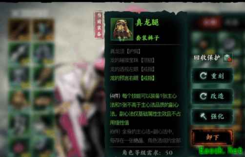 真龙套装最好集够4件达到它的装备效果:每个技能可以装备一个主心法的副心法,而且副心法生效属性不占用悟性。