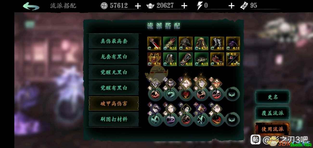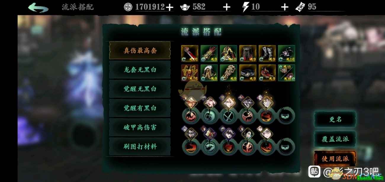 3、奥义流 平民装备 基本上 一套秒老板娘,是可以准备洗套玩玩的 久久归一可以不用