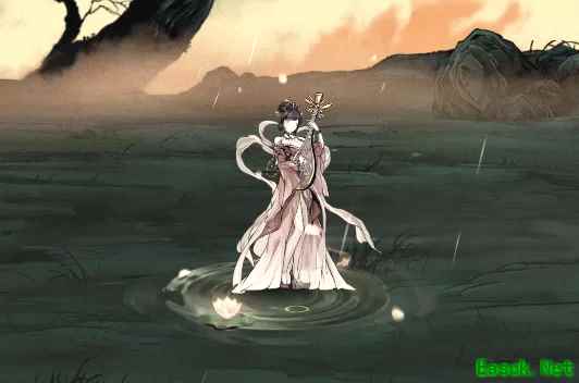 弦者独自伫立在水边,一袭红衣独自抚弄手中的琴,琴声所至,朵朵红莲于水面盛开,与弦者相互辉映,谱写出一曲夏日的清凉之音。