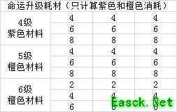 对于命运升级的紫色、橙色材料是如下所示