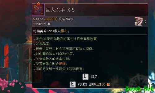 5、在第一次战胜巨人后会获得巨人杀手的图纸,玩家可以在收集家处通过消耗细胞进行制作。也可以选择再次挑战巨人BOSS,第二次及以后打赢就会直接掉落巨人杀手武器,属性则会比较随机,多试几次总能获取符合玩家要求的武器。