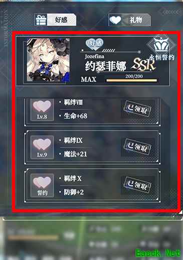 达成好感度,解锁等级可以获得丰富的奖励与角色属性增强。