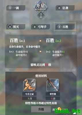 4、特性等级不可以大于特性星级。