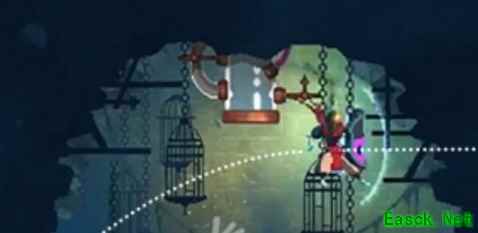 然后球会在下图的绿球上,先跳到左边上方的墙壁上,然后往右边二段跳过去,二段跳的时机要把握好。