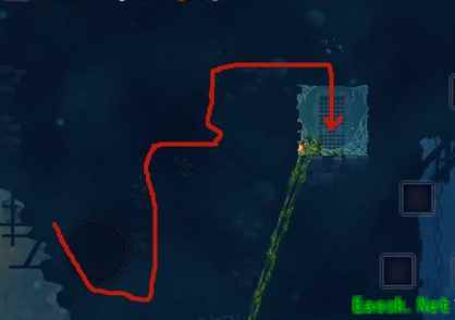 最后根据下图所示的方向移动(右上右上右下),球就能轻松抵达图纸的坑位了。