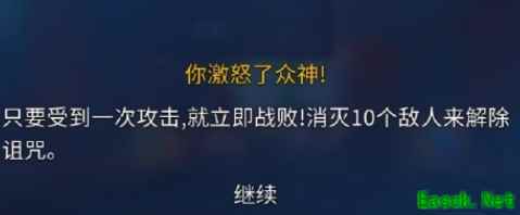 在打开了诅咒宝箱之后就会获得一个诅咒,只要我们受到一次攻击就会直接战败,当击败了10名敌人之后就会自动解除这个诅咒。